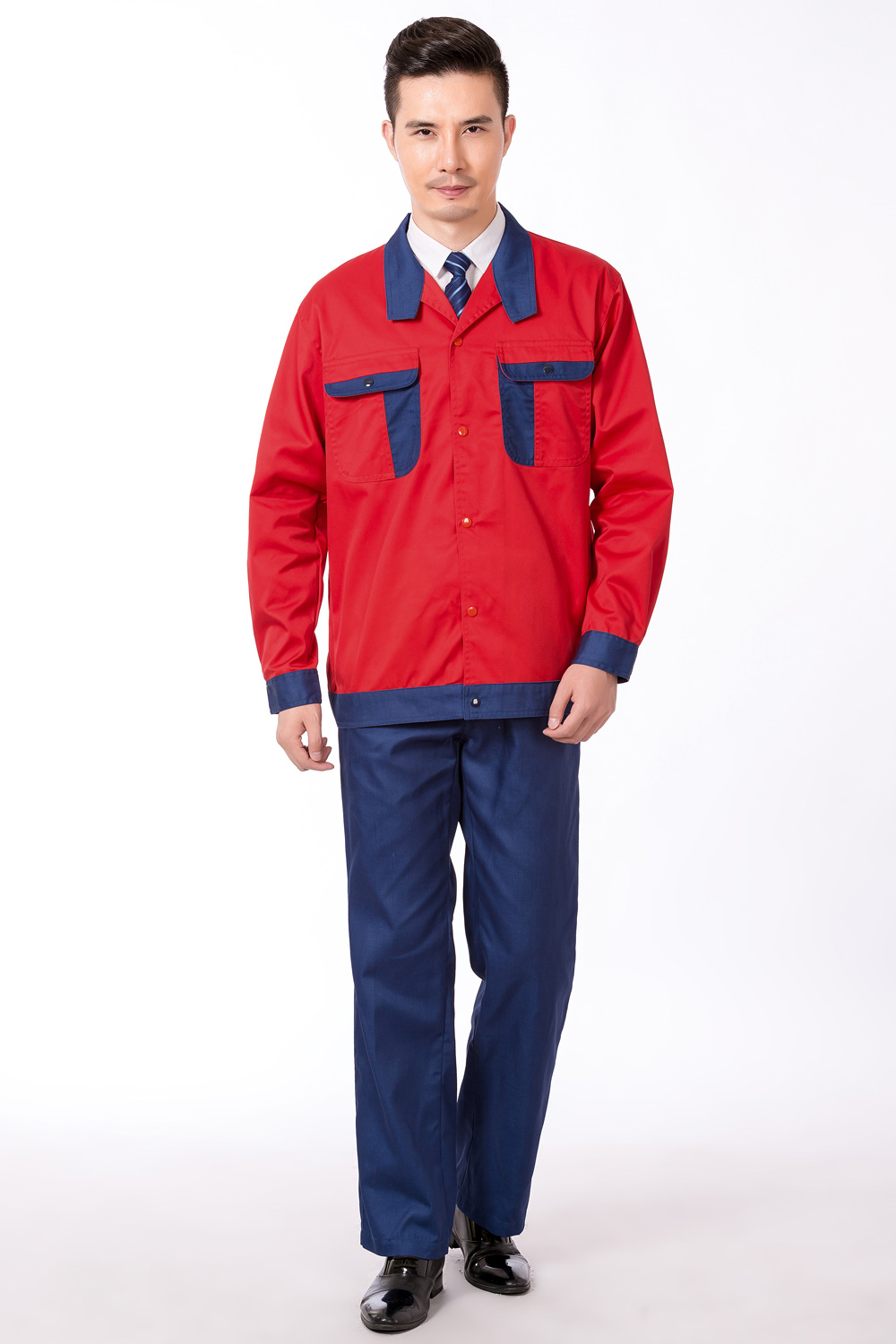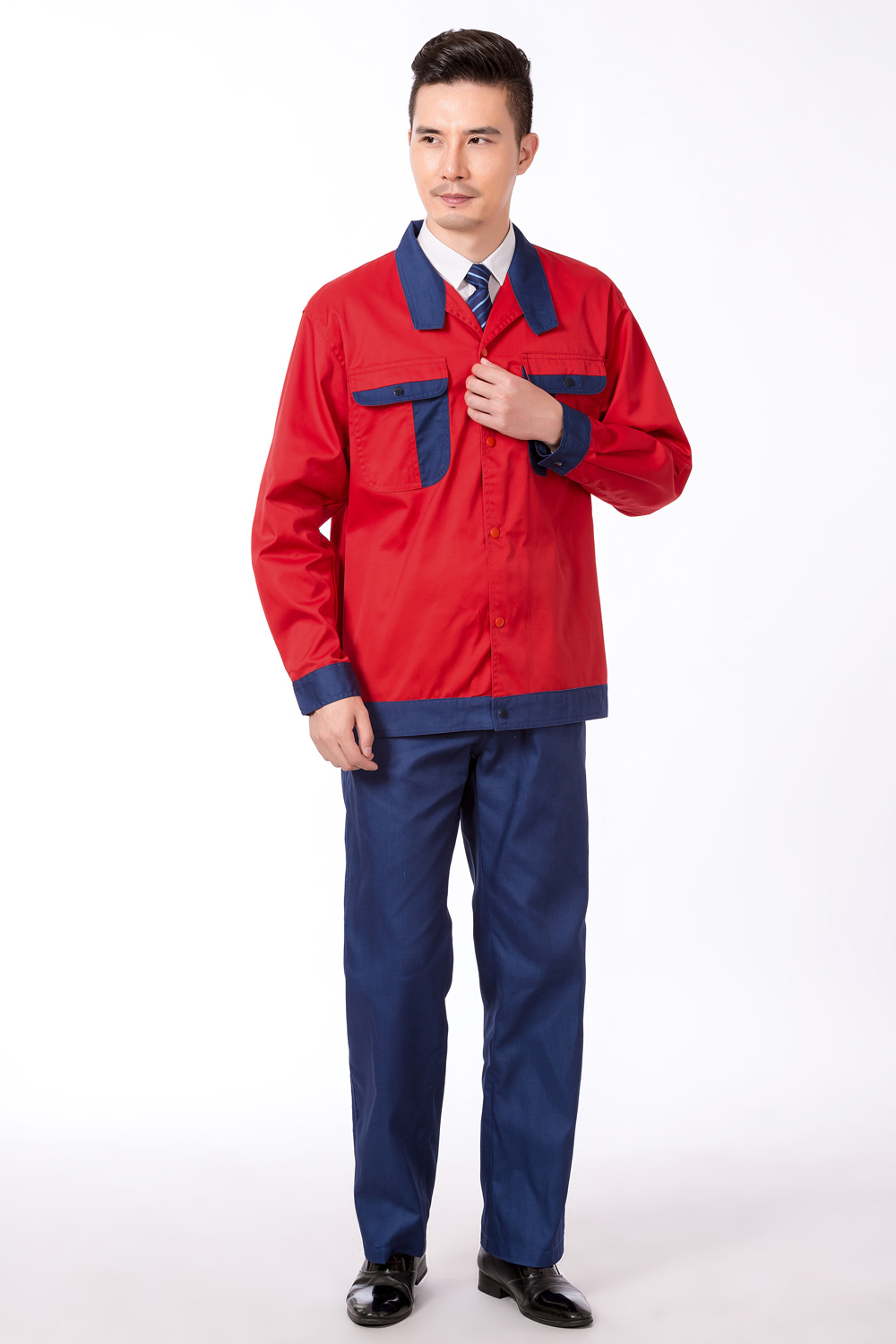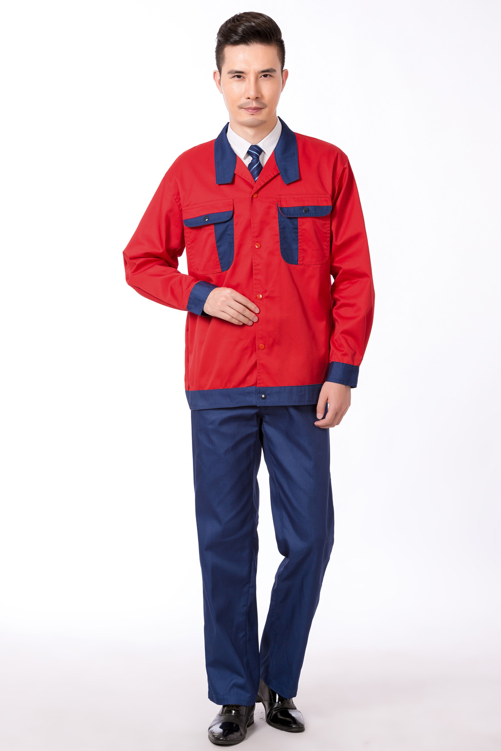 產(chǎn)品名稱:大紅/深藍(lán)撞色防靜電春秋裝