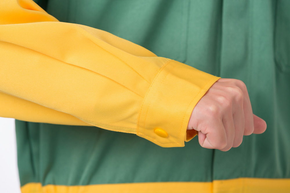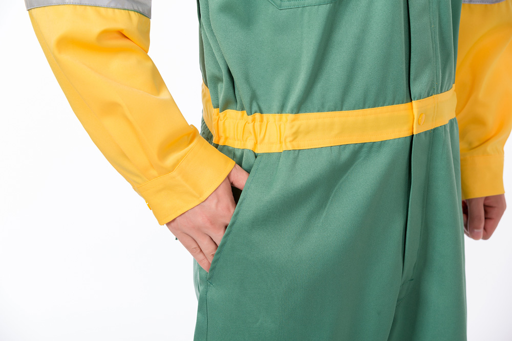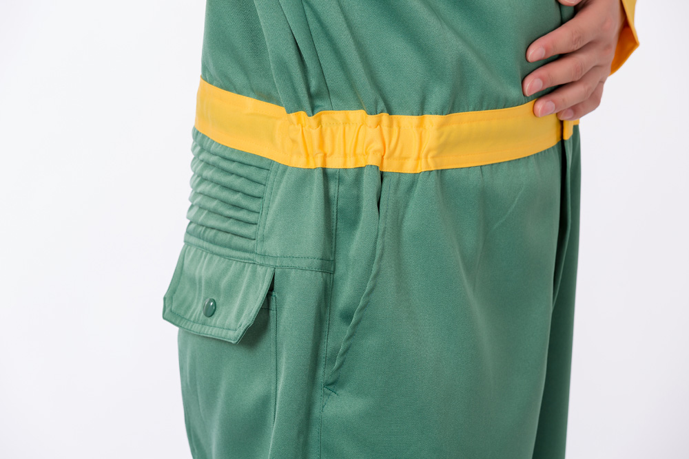 產(chǎn)品名稱:金黃/軍綠撞色防靜電連體服
