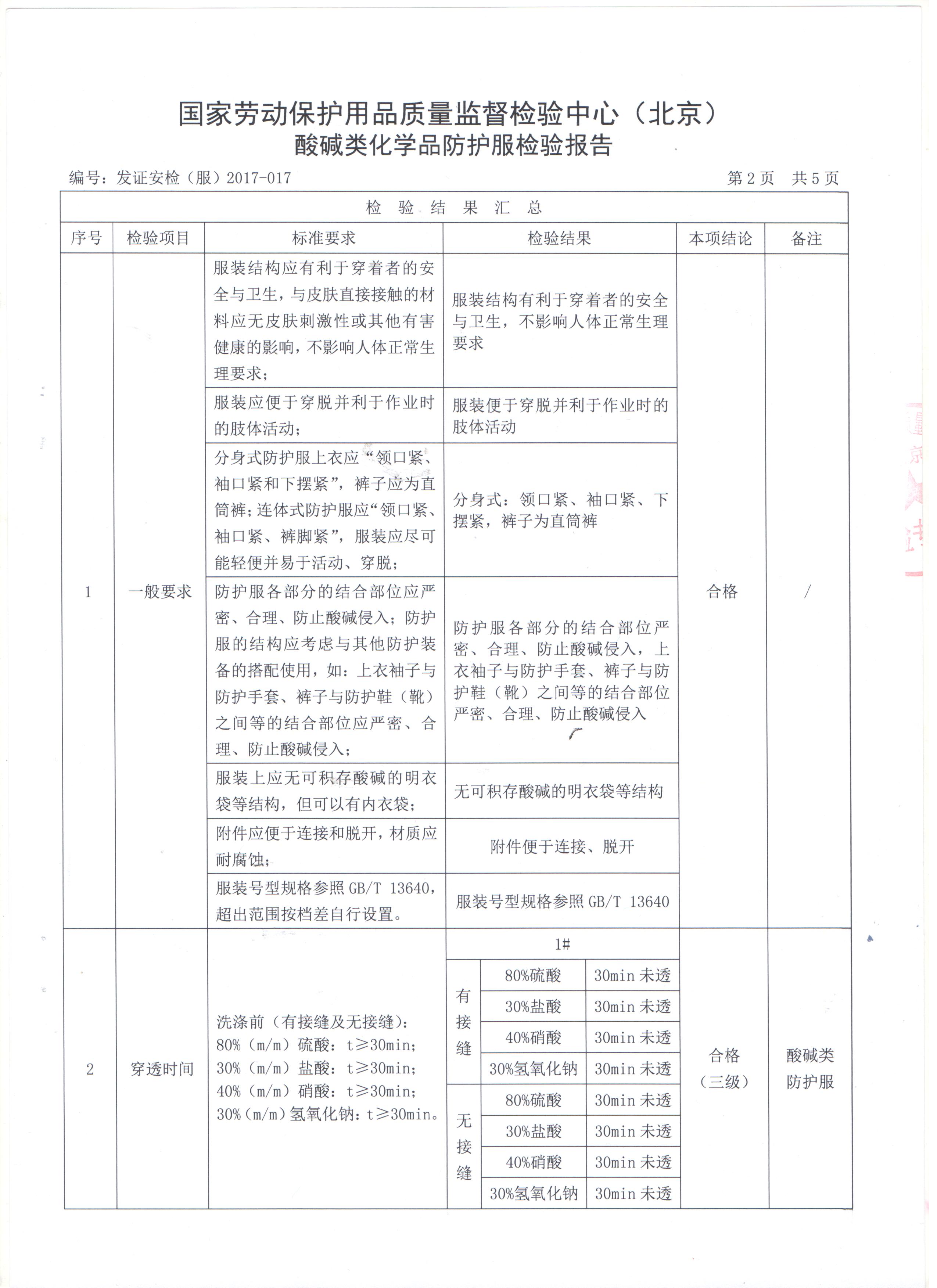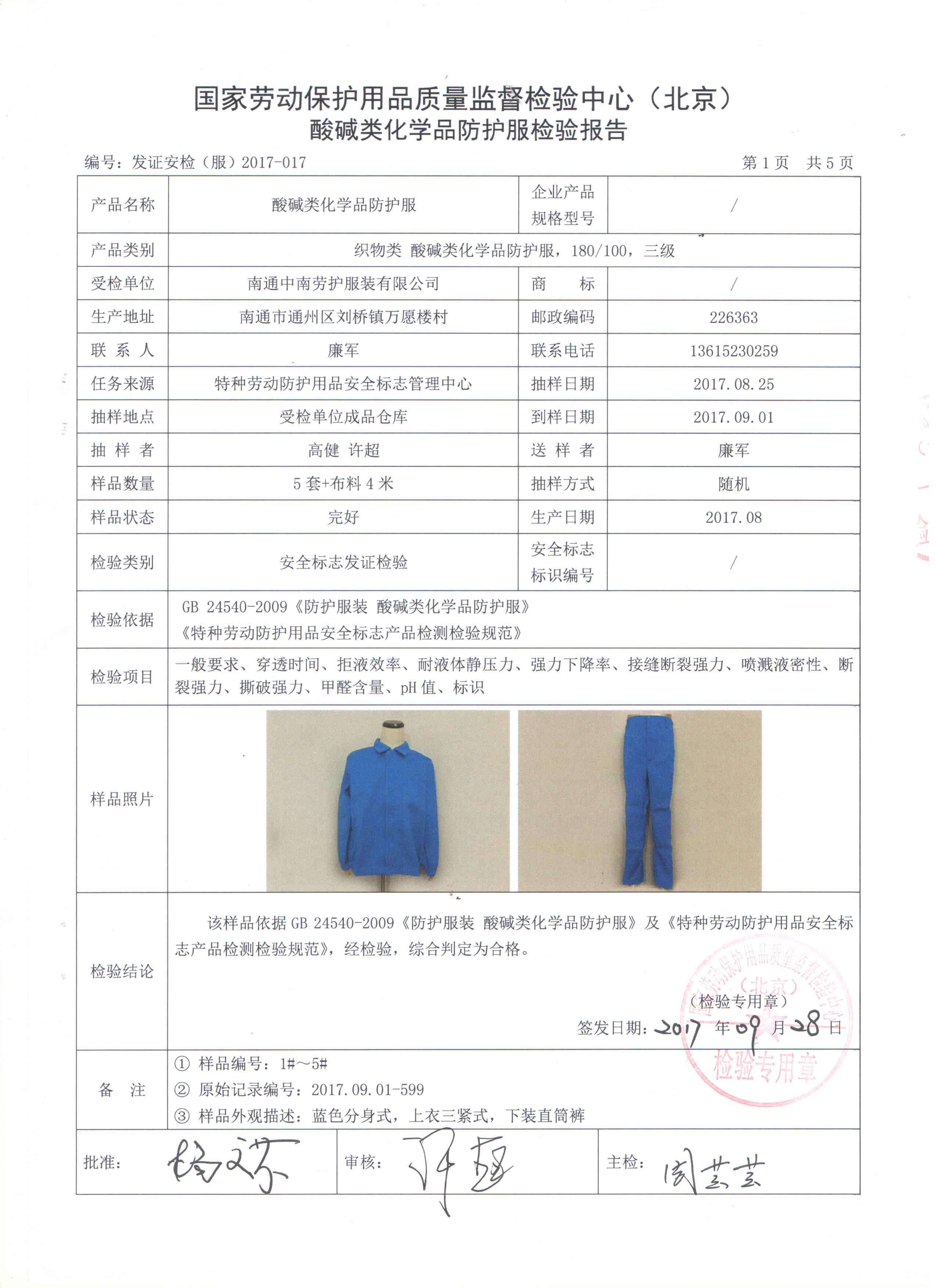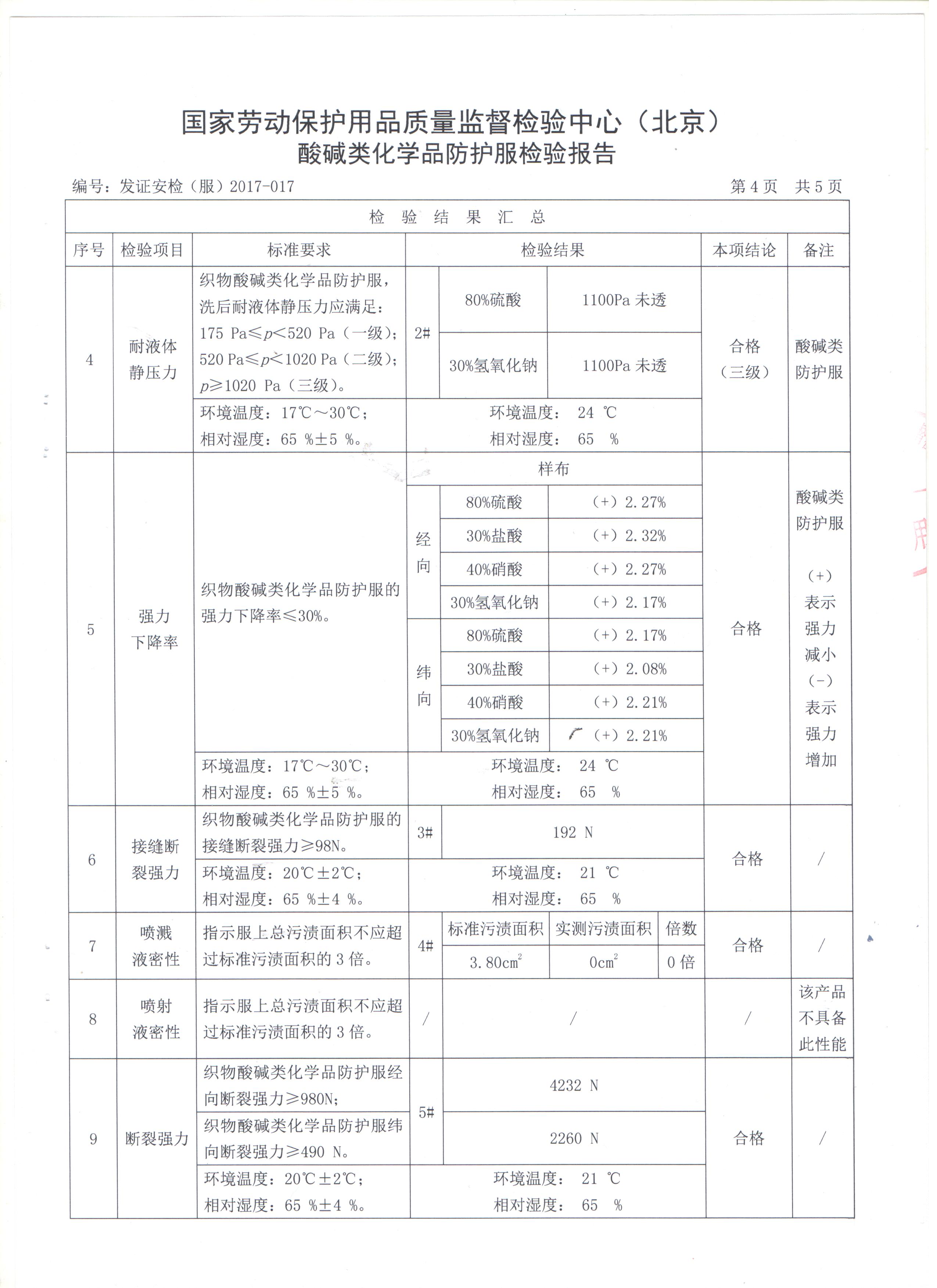 酸堿類(lèi)化學(xué)品防護(hù)服檢驗(yàn)報(bào)告